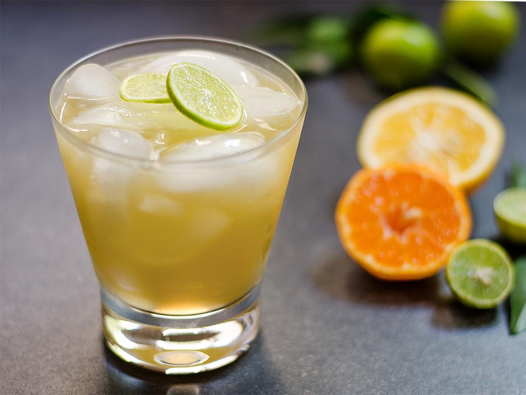 Quarter two limes, half two limes, and slice 1 lime thinly. Juice your half limes and the orange into your shaker, then place the quartered limes into the shaker. Pour in the agave nectar and muddle the limes by pressing and stirring them with a muddler or the handle of a spoon for about two minutes.