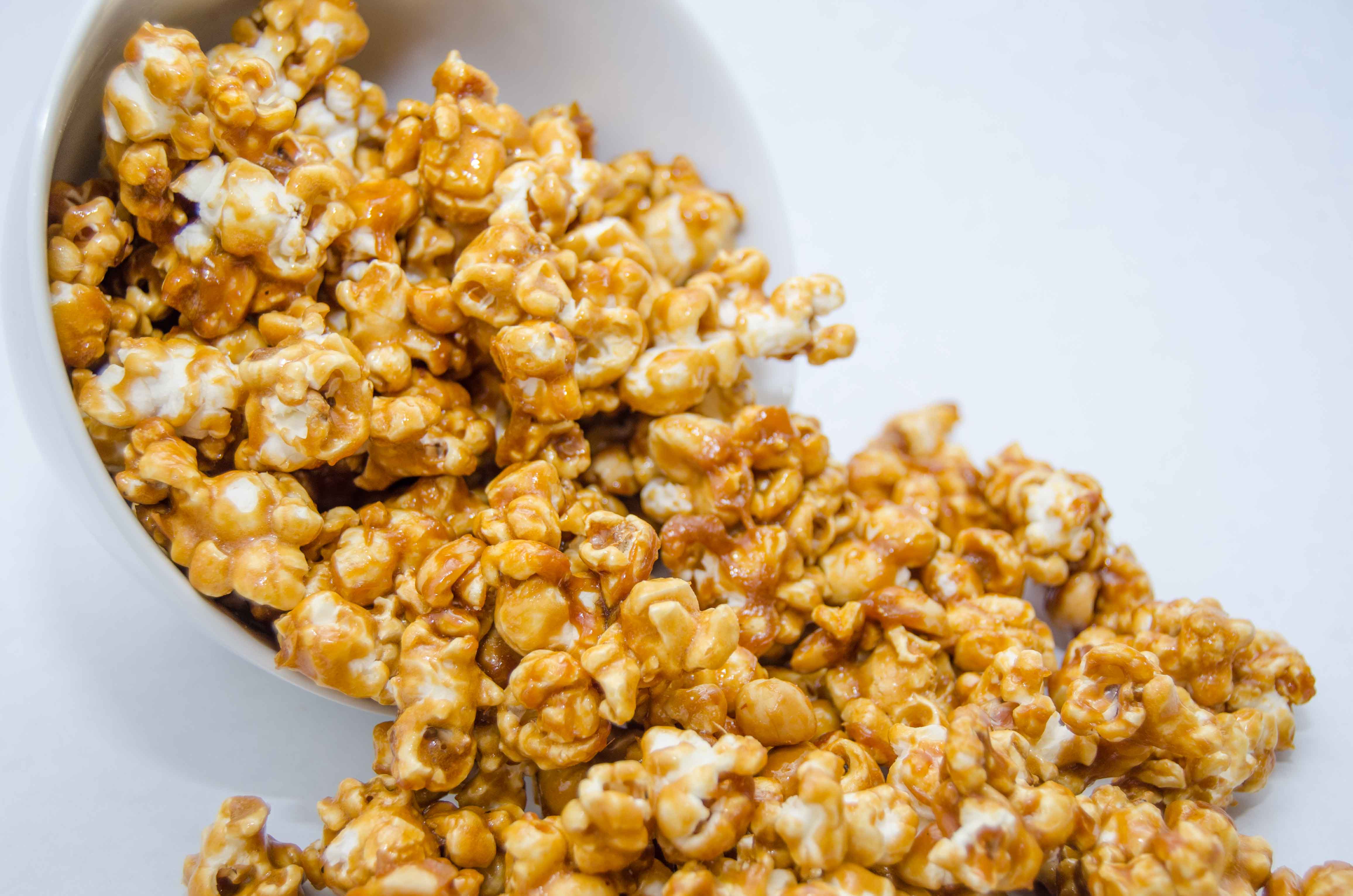 Preheat the over to 250 degrees F (112 degrees C). Pop the popcorn and pour the popped popcorn and peanuts into two bowls.