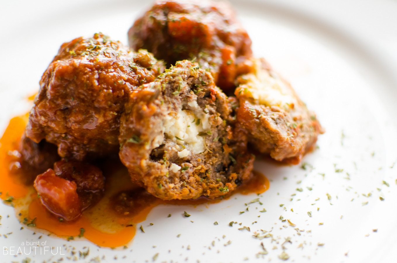 Combine everything except the olive oil in a medium bowl and mix well. Form 16 one inch meatballs and fry them in olive oil in a large saute pan. Do not crowd the meatballs or they won't get brown and crisp - you may have to fry them in batches to get the best results.
