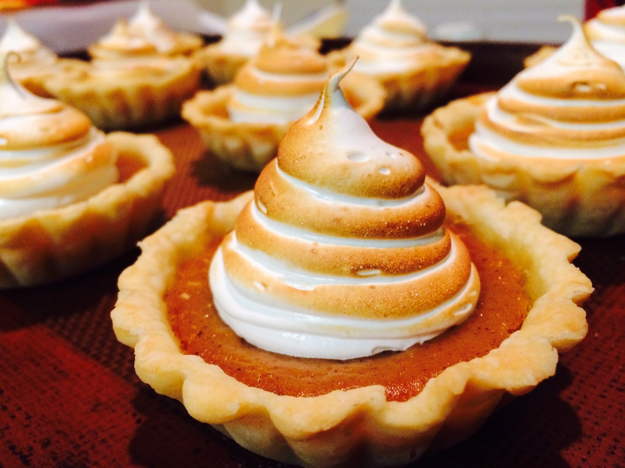 In a large bowl add the yams, cream cheese, eggs, vanilla, cinnamon, allspice, brown sugar and caramel sauce. Beat with a hand-held electric mixer until well combined. Dollop 2 to 3 tablespoons of the pie mixture into each shell. Bake until the custard sets, about 25 minutes. Remove from the oven and set aside to cool.
