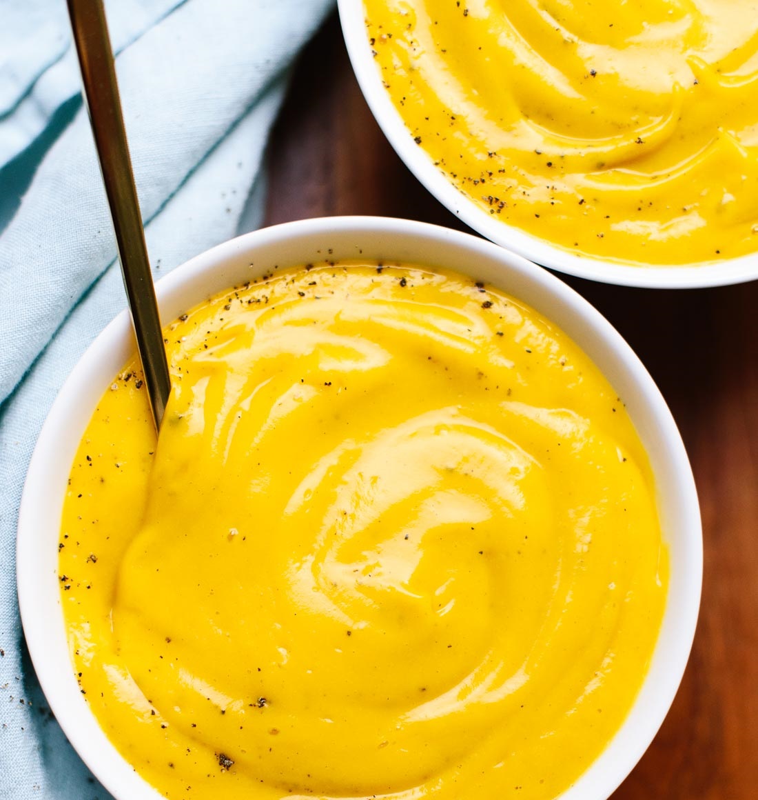 Puree squash and cream cheese in a blender or food processor in batches until smooth. Return to saucepan, and heat through. Do not allow to boil.