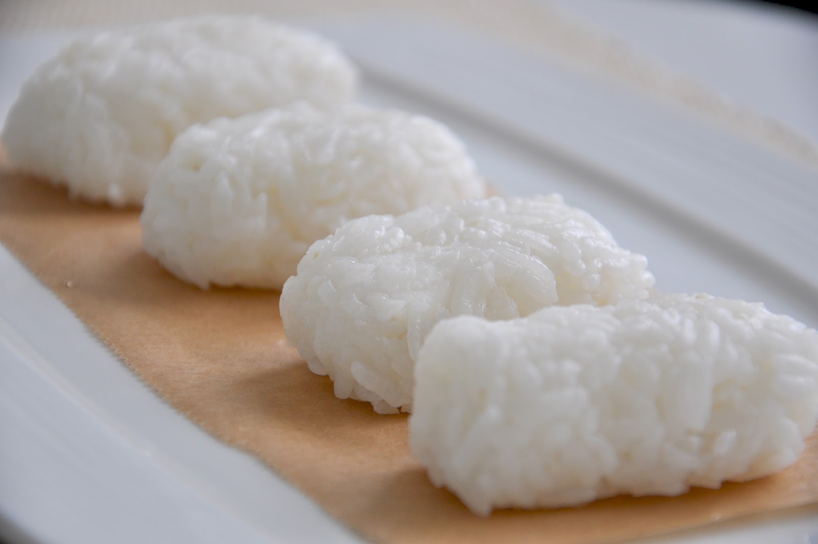 Add the rice to a large non stick pot, then add 1 1/2 cups of cold water. Let the rice sit in the pot with the heat off for at least 30 minutes. This will give the rice the classic sushi rice texture.