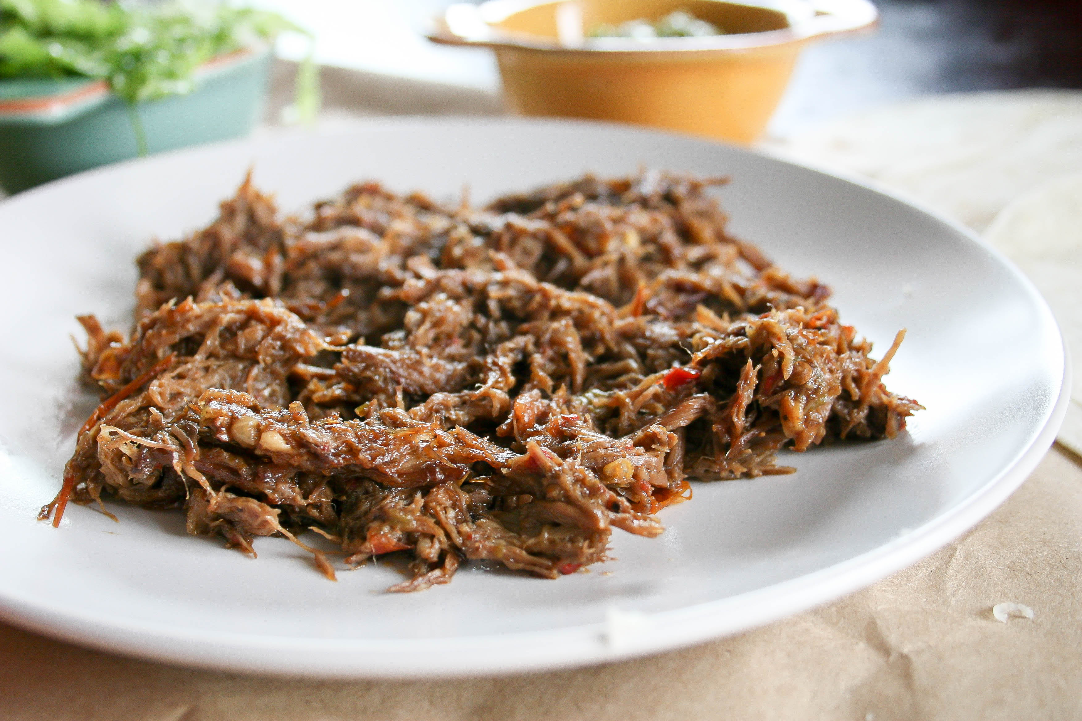 Spoon off the fat in the crock pot, and remove a majority of the onions/peppers via a slotted spoon. Return the shredded meat to crock pot juice and cook on low for 1 1/2 hours. This is important; it allows the spiced juice that has formed to really get in that meat.