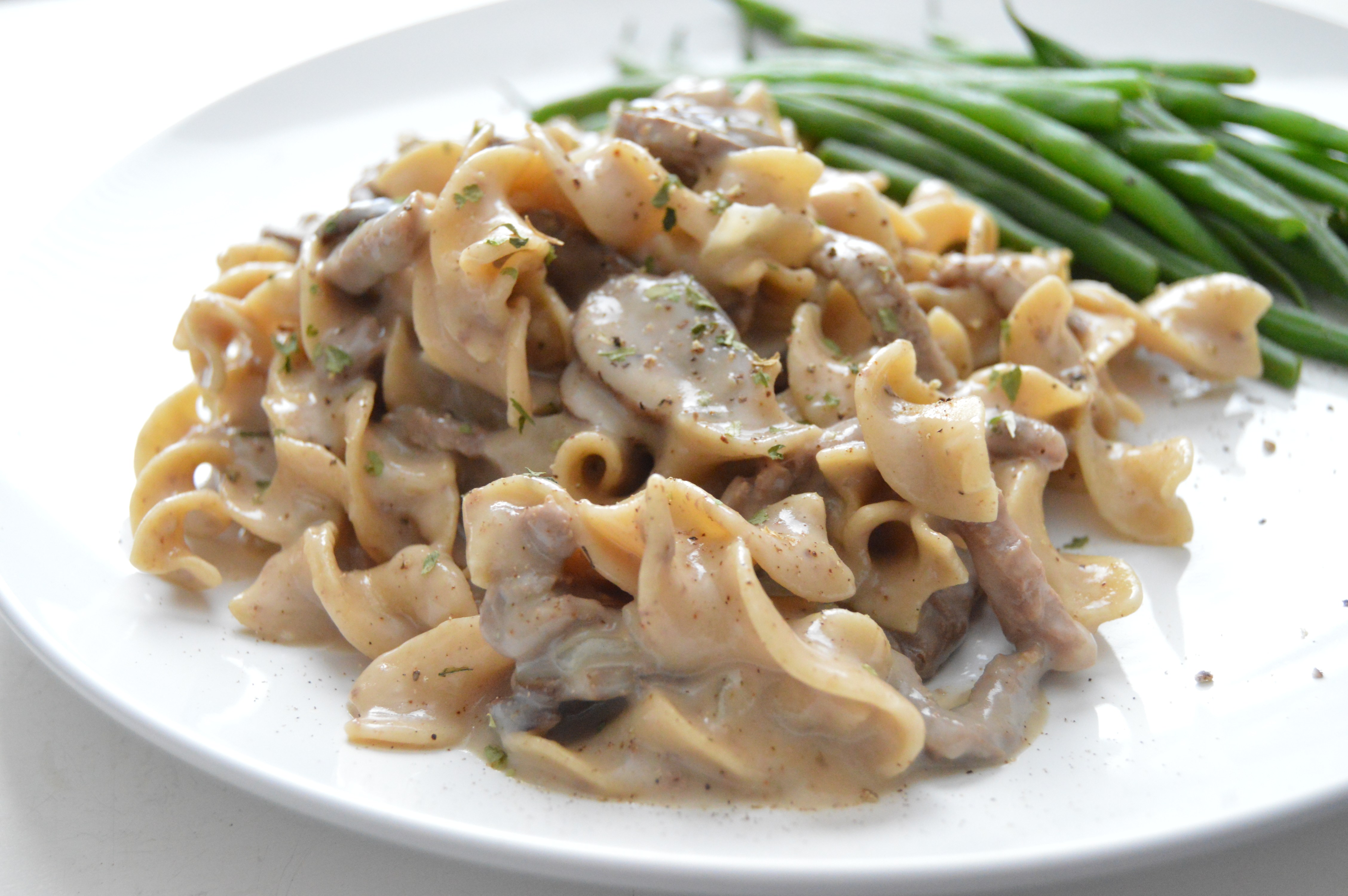 Add cream of mushroom soup or make white sauce. Combine all and serve. Stir remaining broth into flour; stir into beef mixture. Add onion mixture; heat to boiling, stirring constantly. Boil and stir 1 minute. Stir in sour cream; heat until hot (do not boil). Serve over noodles.