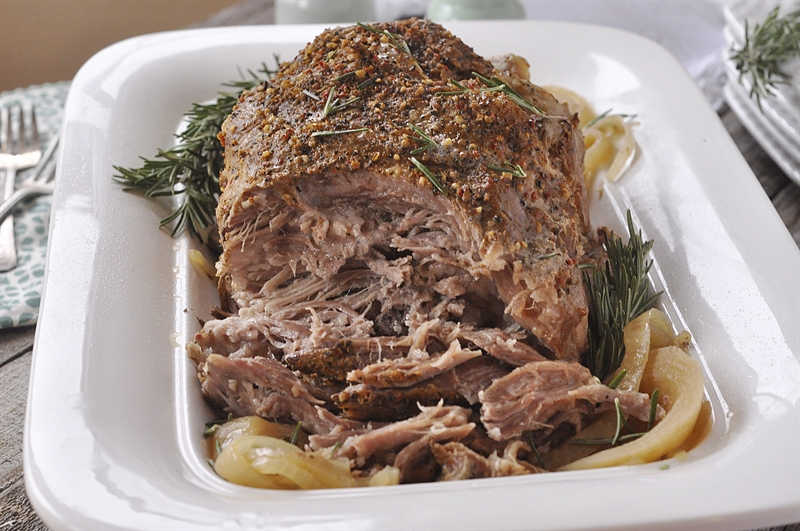 If shredding, pull apart with two forks in a shallow bowl while incorporating as much of the juice as you can. You can add a bit of bbq sauce, or any savory sauce to get it to stick. If slicing, save some of the juice to spoon over pork when serving, or use the juice to make a gravy.
