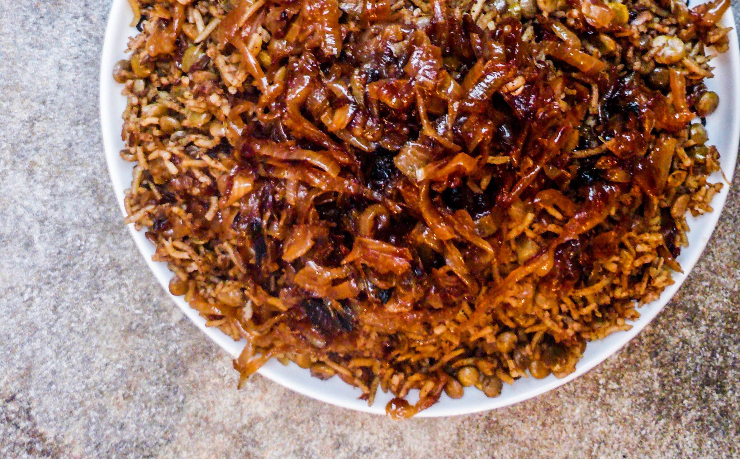 Mix half the onions into the lentil mixture. Top with yogurt or sour cream and remaining onions to serve.
