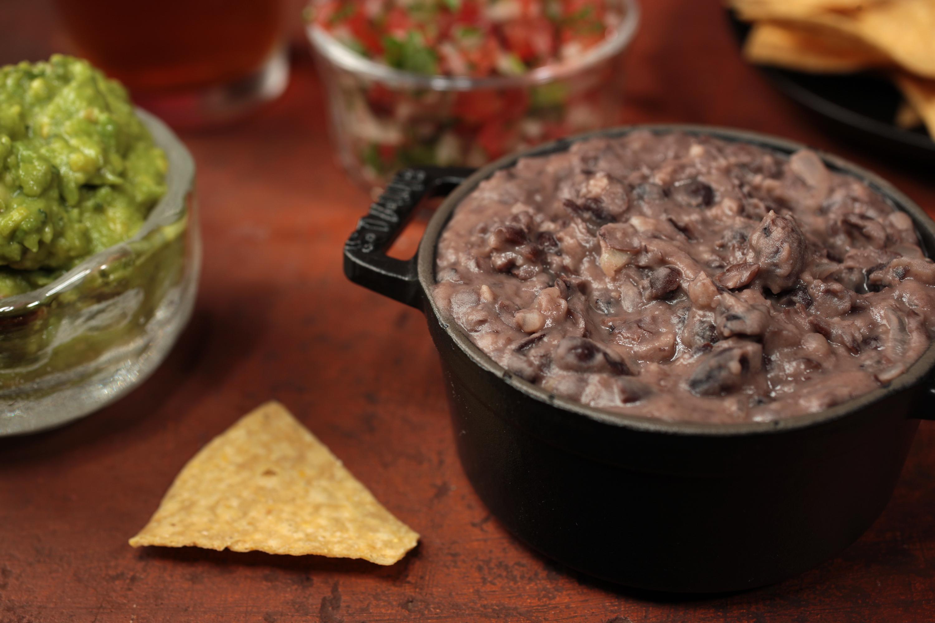 Let the beans come to a brisk simmer, then lower the heat to maintain a gentle simmer. Cook, stirring and mashing often until the beans resemble a very coarse puree and have thickened, 15 to 20 minutes. When you tip the pan, the beans should creep forward like lava. The beans will thicken a little more once they cool. Add salt to taste. Use warm or at room temperature.