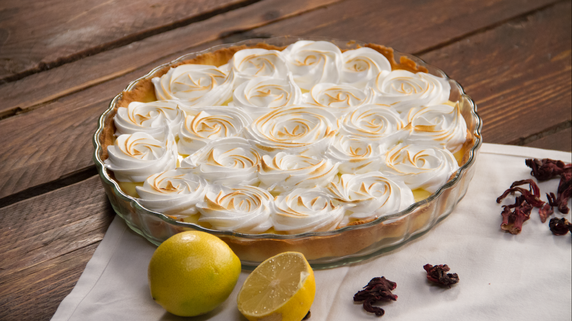 In a large glass or metal bowl, whip egg whites until foamy. Add sugar gradually, and continue to whip until stiff, glossy peaks form. Spread meringue over pie, sealing the edges at the crust. From here you can use a small torch to brown the meringue peaks or bake for 12 minutes in oven set to 350.