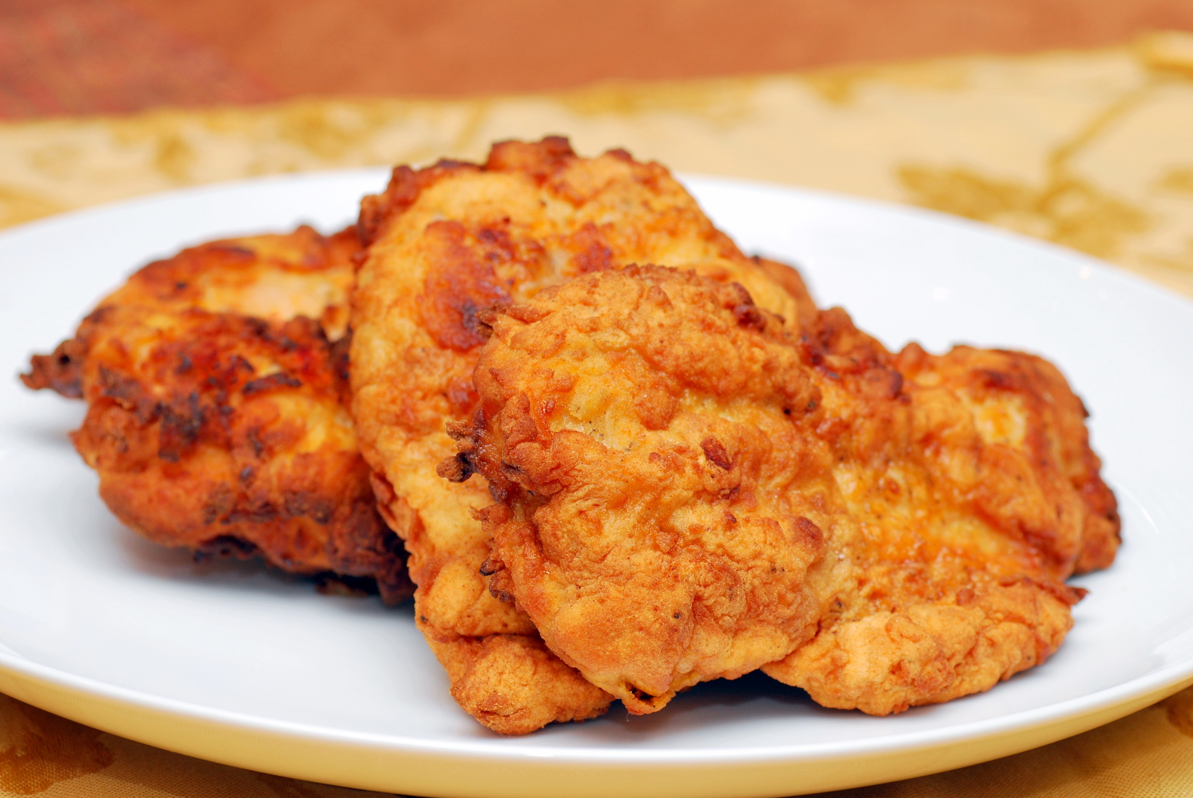 Heat the vegetable oil in a skillet over medium-high heat. Dredge the chicken breasts in flour again, and shake off excess. Brown the chicken in the hot oil until golden brown on both sides. Place onto a baking sheet, and bake in preheated oven until the chicken is no longer pink in the center, 15 minutes.