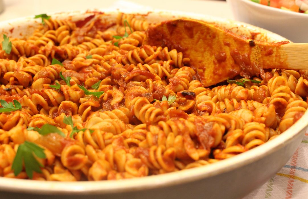 Crumble the tofu into the saucepan and cook for 5 mins, stirring occasionally. Drain any excess liquid, then add the tomato puree and basil. Cook the pasta, then top with the sauce and parsley.