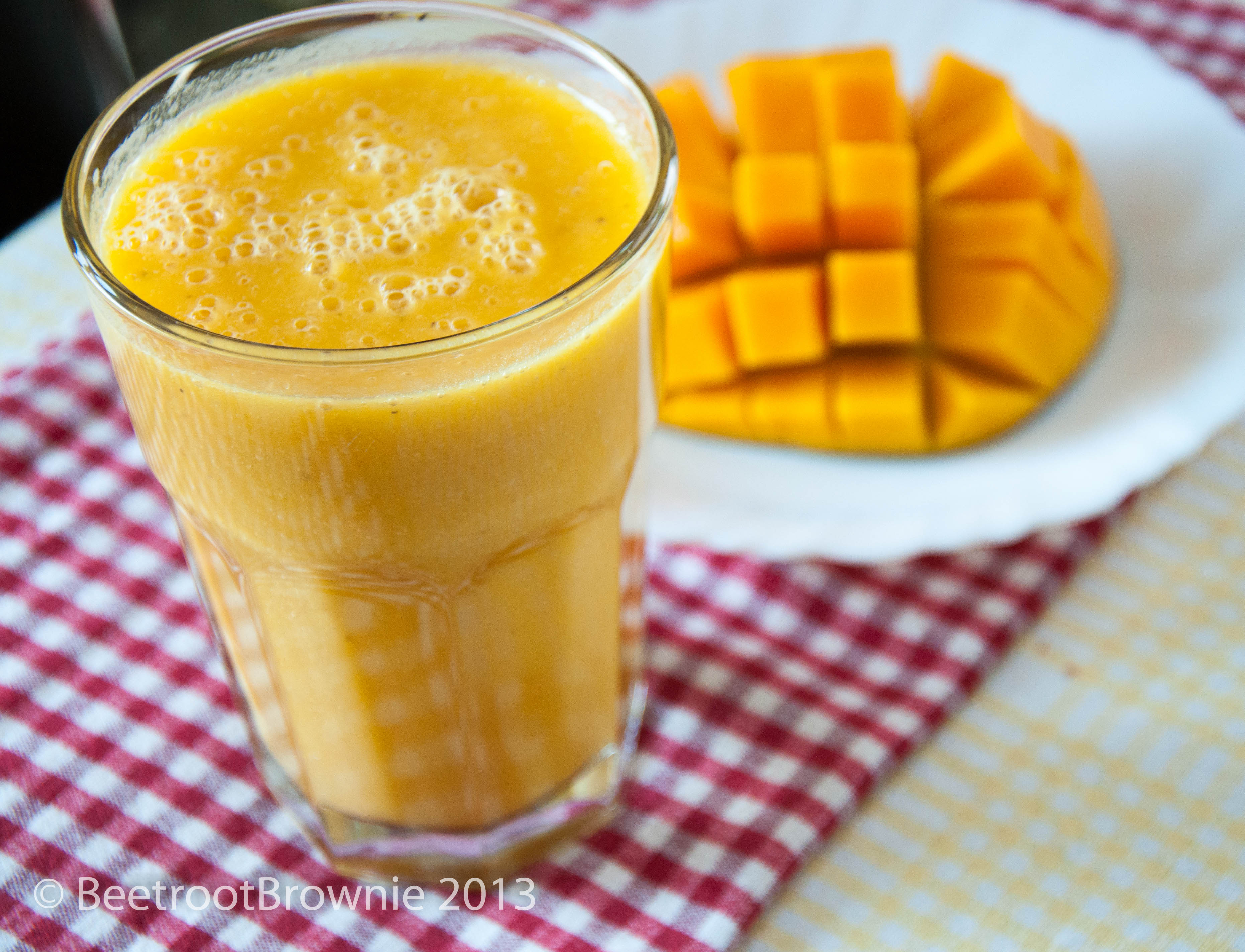 Peel and slice the banana and mango.