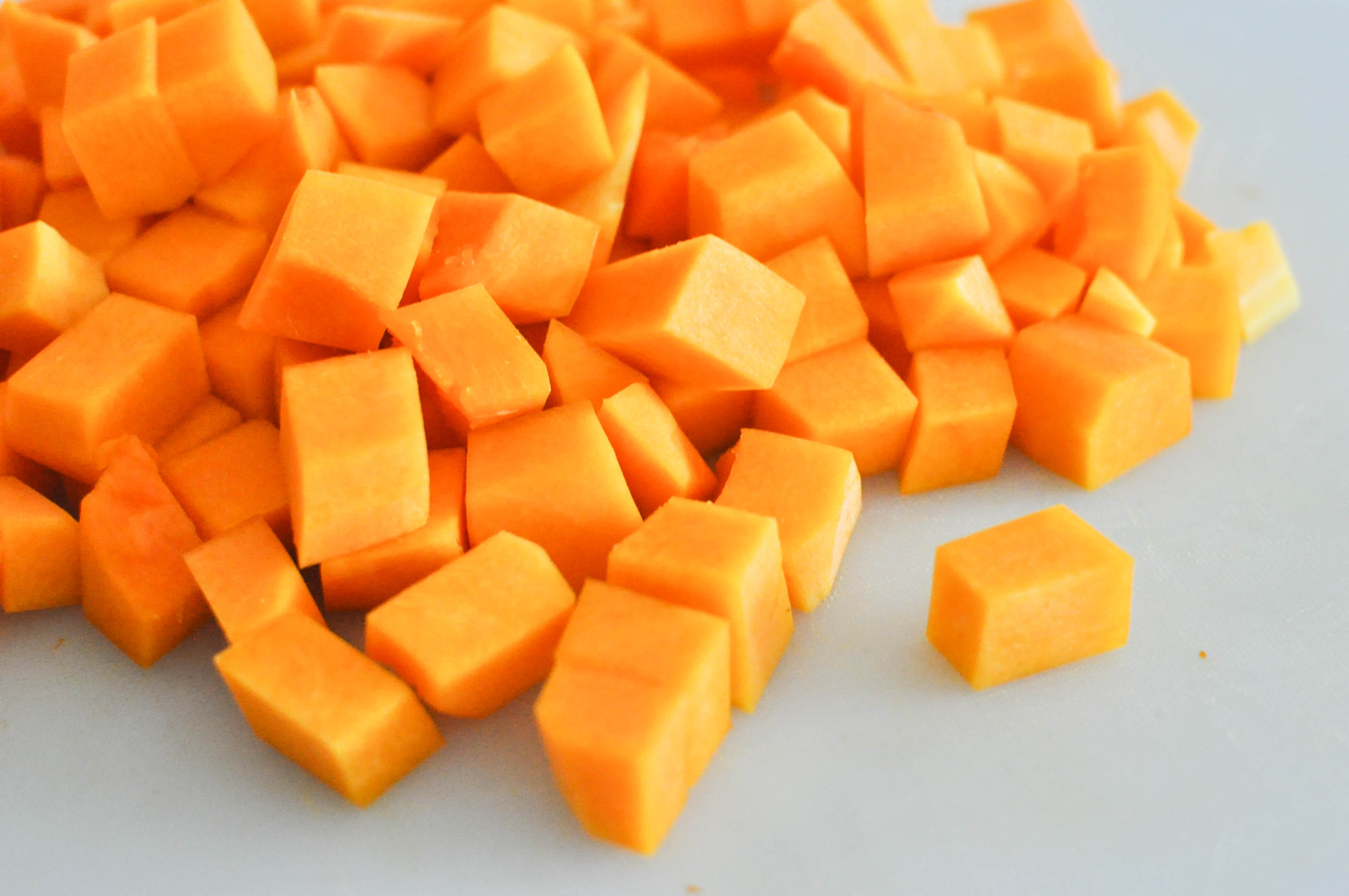Cube the cheese to bite size.