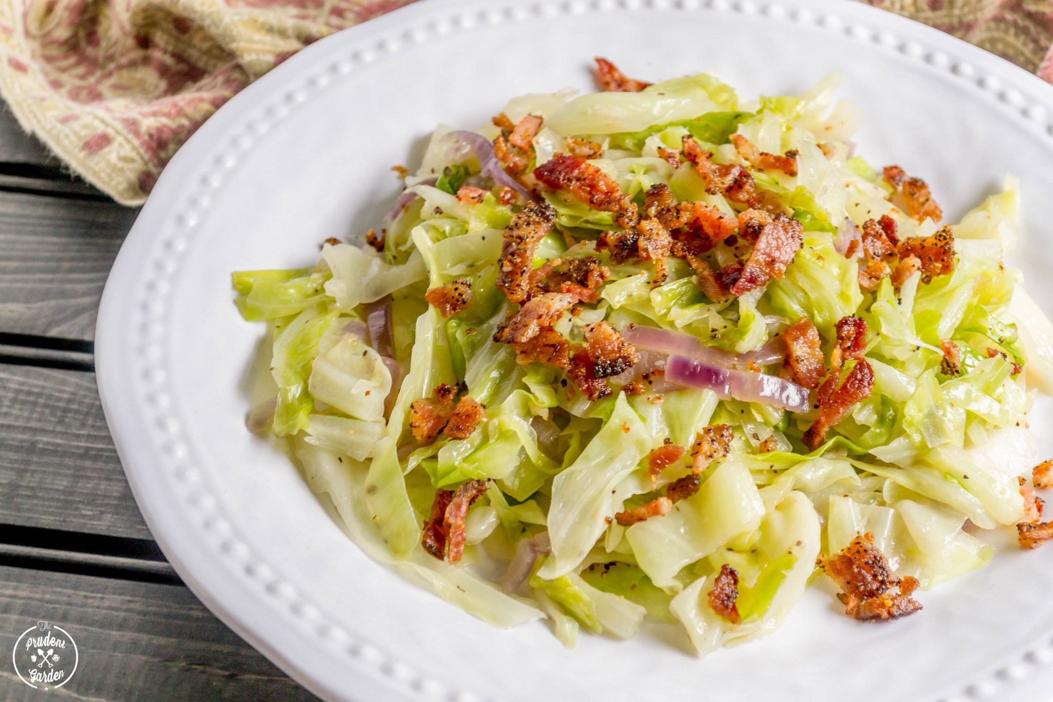 Place cabbage into a large pot. Add water and bring to a boil. Simmer over low heat until tender, about 15 minutes. Meanwhile, cook bacon in a skillet over medium-high heat until crisp. Drain and set aside.