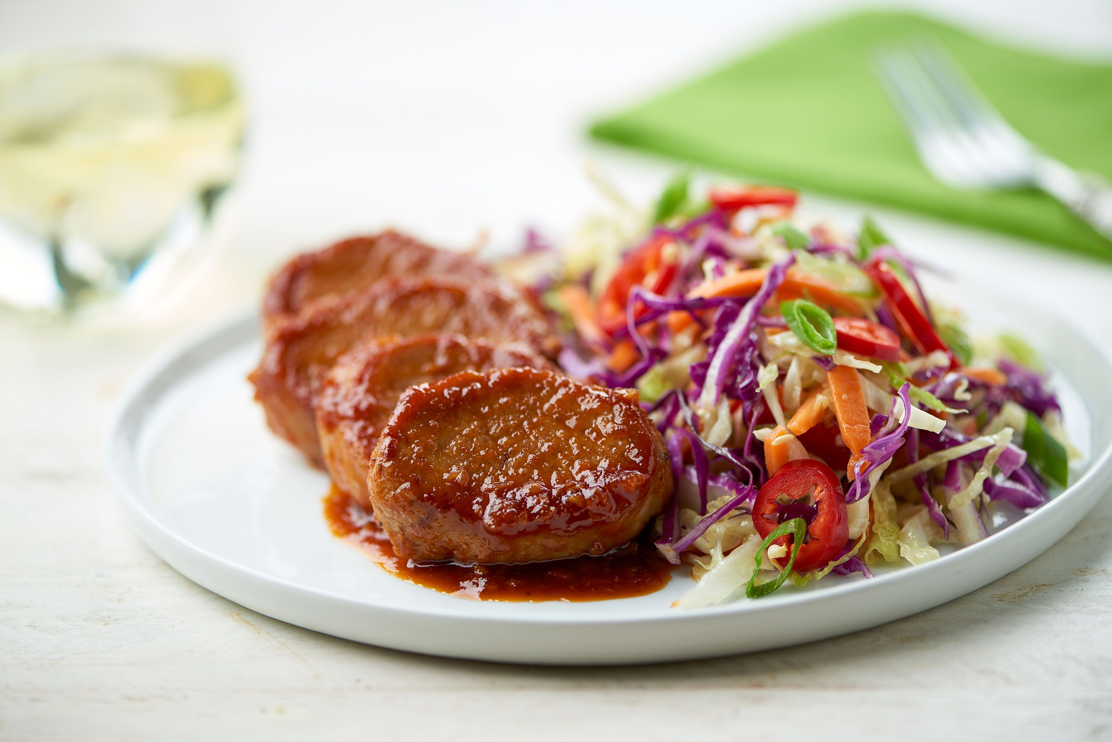 To serve place pork medallions on a platter and spoon the balsamic-honey glaze over them.